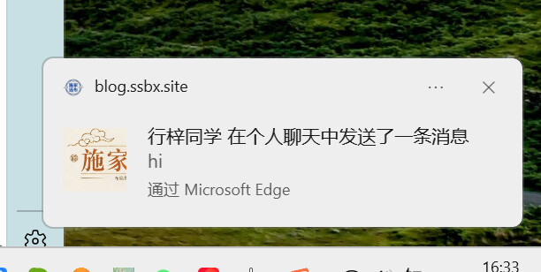 通过浏览器打开社区网站,如果在收到消息一两分钟之后,如果没有查看消息,屏幕右下角会自动弹出通知: