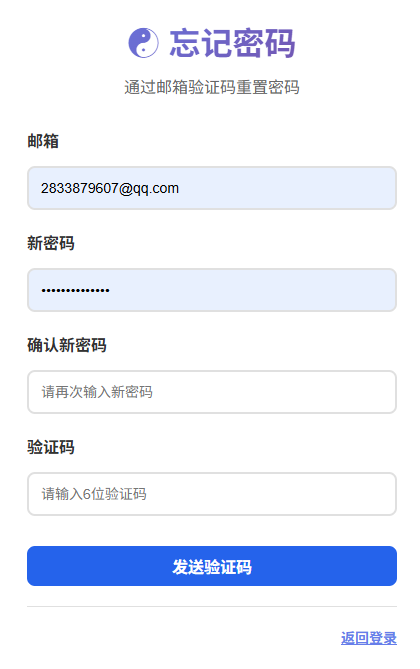 如果密码忘记了,可以通过注册的邮箱接收验证码,然后验证通过后可以重置密码: