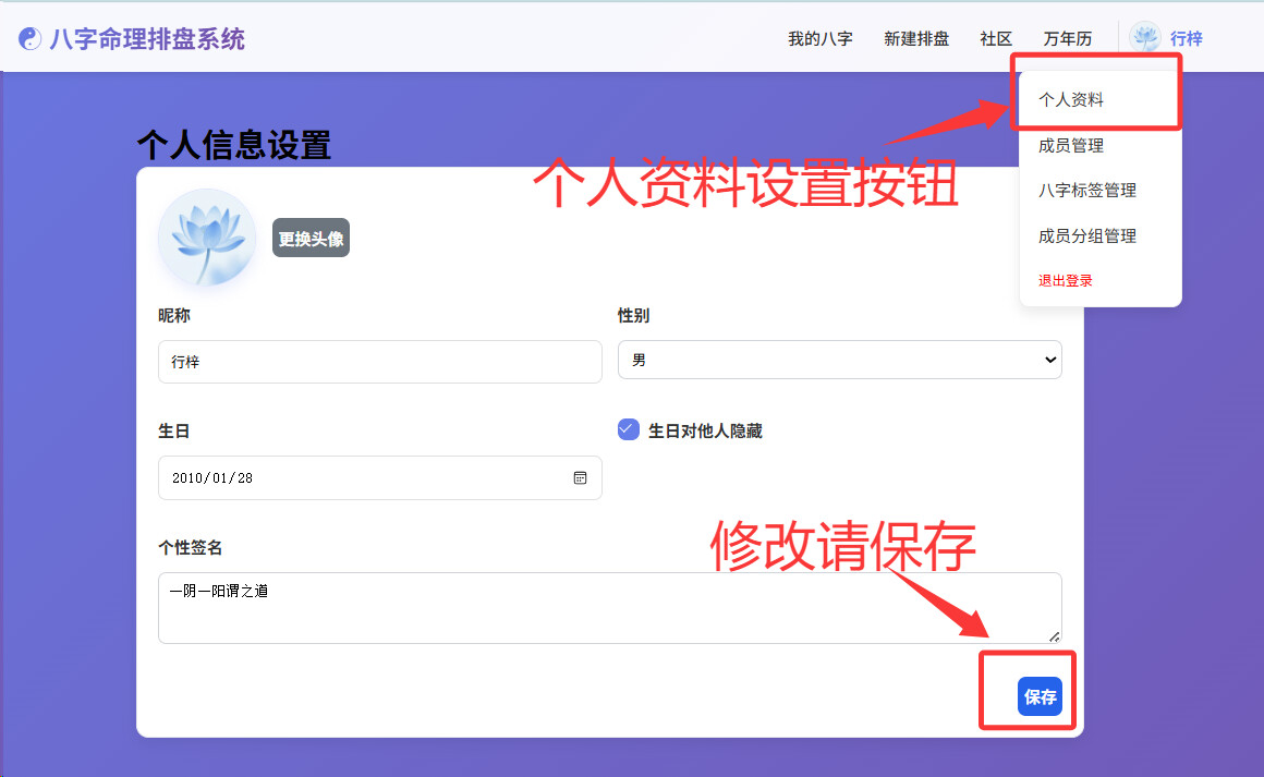而最近在指导老师的帮助下,我和几个小伙伴组成了学习小组,各自有每天打卡和学习的内容。其中,“国学命理”就是我们业余学习的一个板块,这激发了我学习的兴趣,而恰好我的老本行就是软件设计,同时,为了方便大家学习命理知识,于是,在学习命理的过程中,我顺便用一周的时间做出了这个命理学习交流社区网站。